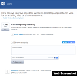 "Майкрософтан программашкахь нохчийн меттан нийсаяздаран дошам хилча вуно дика хир ду", аьлла, Word-ан официалерчу агIонтIехь кхаьжнаш тесира 11 эзар нохчочо а, церан аьтто хилча хазахетачу кхечу къаьмнийн векалша а.